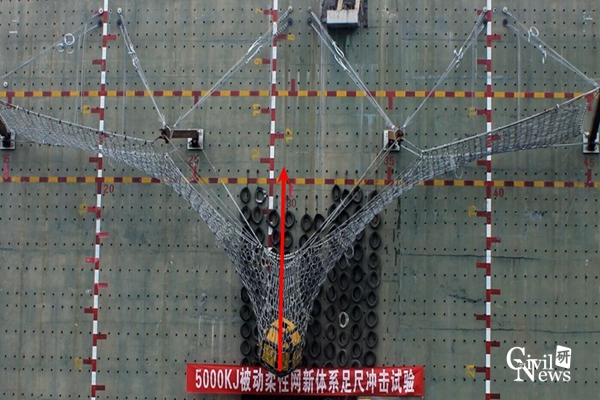 稍后,在无修复状态下,研发人员再次分别以2700kJ的冲击能量对防护结构进行了原位冲击试验和不对称冲击试验,累积冲击能量超过10000kJ,均取得圆满成功。