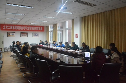 2015年1月5日,土木工程学院继续教育中心在1314会议室召开了中心高教自考学生辅导员2014年年终考评大会,中心高教自考学生15名辅导员老师全部参与了年终答辩。远程与继续教育学院曾家刚副院长,土木学院继续教育中心任宝良主任、中心教务办、中心学生办及各教学单位的负责人参加了本次考评大会,大会由继续教育中心杜鸿老师主持。所有考评的辅导员都进行了精彩的答辩,各位评委进行了认真的考评,最终评选出了刘潇等八位辅导员老师为年中心“2014优秀辅导员”,曾家刚副院长和任宝良主任对获奖的老师表示祝贺,并分别做了重要讲话。