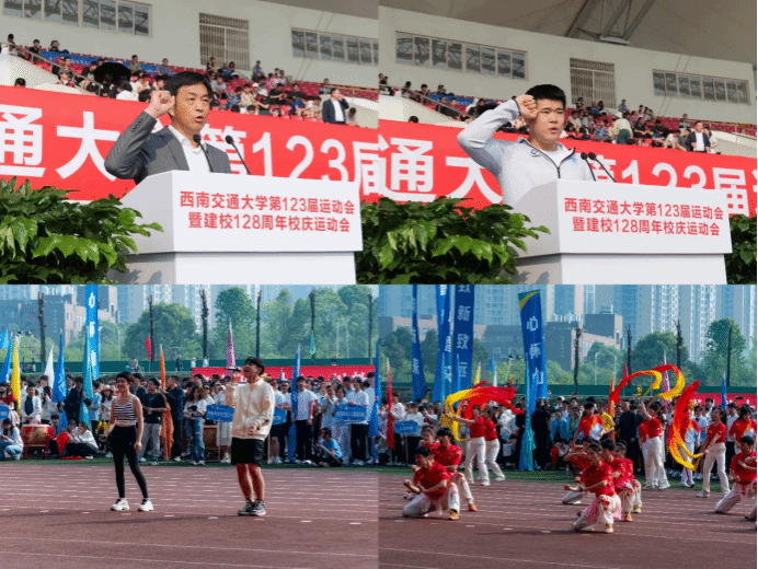 春光作序,万物和鸣,4月12日上午,“西南交通大学第123届暨建校128周年校庆运动会”于犀浦校区北区体育场隆重举行,学校及学院相关领导莅临开幕式现场,为此次赛事助力。本次开幕式由西南交通大学体育学院院长刘江主持。