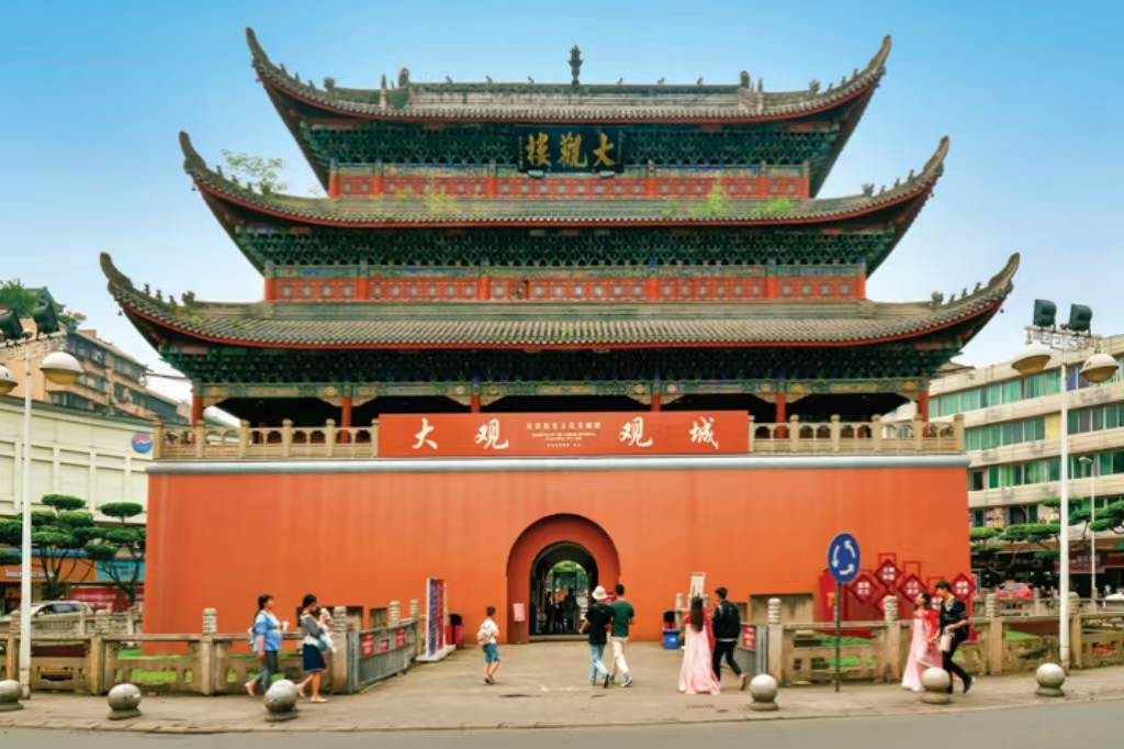 当我于宜宾市内信步闲庭,目光悠悠之处,车水马龙,人流如练。烟火气息浓郁的小巷,高楼林立的市区,人声鼎沸的街道......宜宾市中心翠屏区西街2号,大观楼巍巍矗立的地方。回溯大观楼跌宕的历史,无数人、物、景、事犹如被不断快进的电影片段,是非成败转头空,唯有千百年来巍然不动的大观楼,淌过历史的河水,依旧屹立于新时代的此岸。