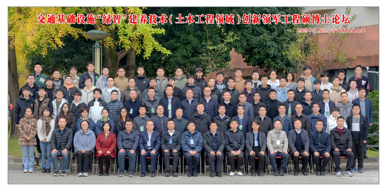 11月22日,2025年交通基础设施“绿智”建养技术(土木工程领域)创新领军工程硕博士论坛在西南交通大学镜湖宾馆隆重拉开帷幕。论坛由西南交通大学研究生院、国家卓越工程师学院主办,土木工程学院承办,紧扣面向国家重大战略急需的核心导向,聚焦土木学科转型发展关键方向,以绿色智能技术在交通基建建养领域的创新突破为核心议题,搭建起高校、科研院所与行业企业间高效的学术交流及产教融合平台。