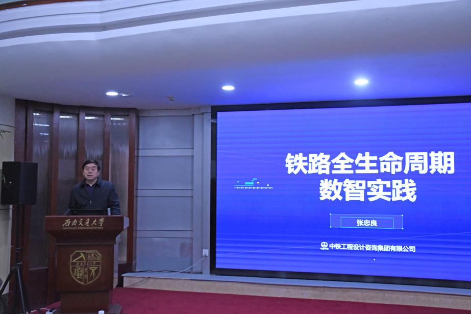 中铁工程设计咨询集团有限公司技术顾问、铁路BIM中心首席专家张忠良,以“铁路全生命周期—数智实践”为题,系统梳理数字技术在铁路勘察、设计、施工、运维全流程的应用现状,介绍我国铁路数字化标准在国际上的引领性进展,以及设计院数字化转型的组织架构调整与技术创新案例。