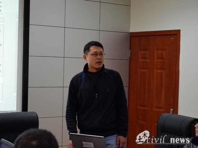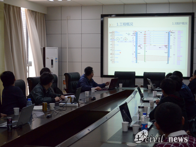 黄凌飞首先以自己的项目——“上海黄浦区109号地块”为例子,向大家详尽地展示专业基坑从开挖到结束的整个过程。整个工程分为“工程概况”“加固方案深化”“A基坑开挖深化”等7个施工步骤。对于一些施工现场所使用的机器,黄凌飞希望大家尽量到施工现场了解。“希望你们以后也可以像我一样可以在写字楼里做施工”黄凌飞风趣地说道,“我没有在工地上做施工是由于场地的限制,不得不在写字楼里做策划,但我希望大家日后能因自己的职位坐在写字楼里办公”。随后同学们相继提出了自己的疑问,黄凌飞一一作了认真的解答。黄凌飞还和现场同学在基坑如何打桩以及打桩所用设备方面和大家展开了激烈的讨论。