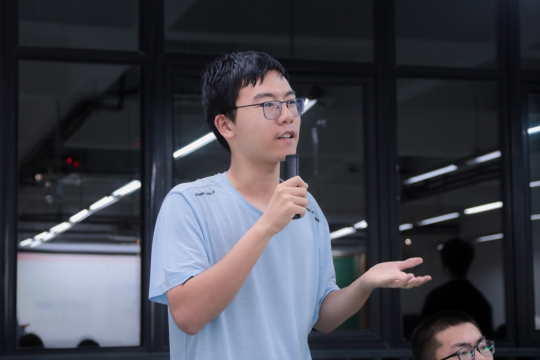 在主持人介绍了赛题基本情况后,答疑会正式开始。首先进行的是第一环节。在张森同学的讲解和PPT中,各参赛选手了解到命题背景为船只结构的创新设计,且利用标准白卡纸进行模型制作。现场通过实物展示的方式对范例模型进行了说明,着重展示其结构构型和基本外观。通过科创中心结构组长吕忠同学的深度演示,本次竞赛目的旨在让2025级土木新生能够结合土木工程专业特色,培养其创新思维和动手能力。并依次介绍了参赛作品的给定的原材料、作品要求、理论方案和模型收取等参赛选手特别关心的问题。