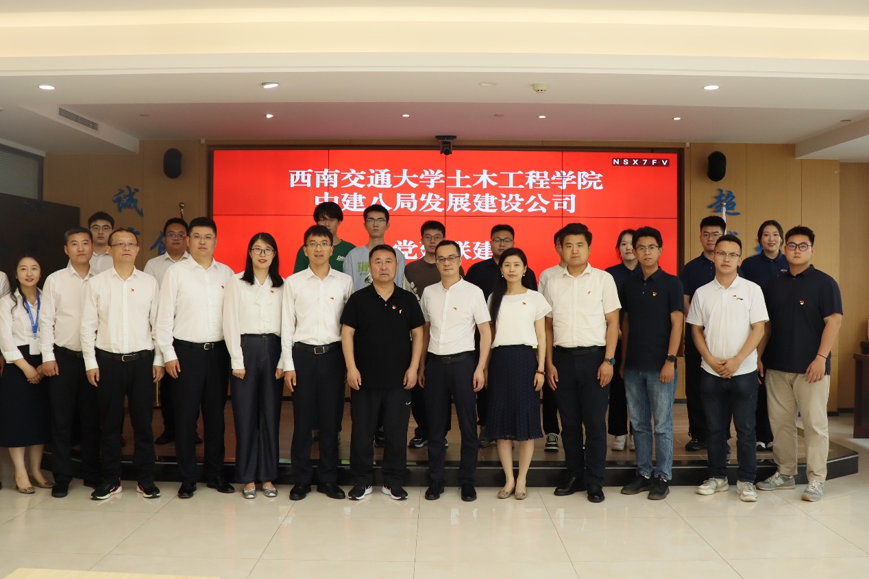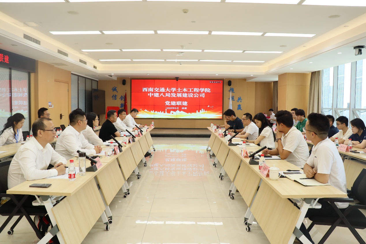 2025年6月30日,在庆祝中国共产党成立104周年之际,bat365中文官方网站与中建八局发展建设公司在成都隆重举行“结对共建,聚力育人”党建联建暨校企交流活动。中建八局发展建设公司党委副书记、工会主席陈成林,中建八局发展建设公司人力资源部经理张恩利,中建八局发展建设公司西南分公司党总支书记、总经理王思臻,中建八局发展建设公司西南分公司党总支副书记、工会主席吴世伟,西南交通大学招生就业处副处长周曦,bat365中文官方网站党委副书记刘萍,辅导员代表出席活动,本次活动由中建八局发展建设公司党建工作部(企业文化部)主任、工会工作部部长吴春涛主持。