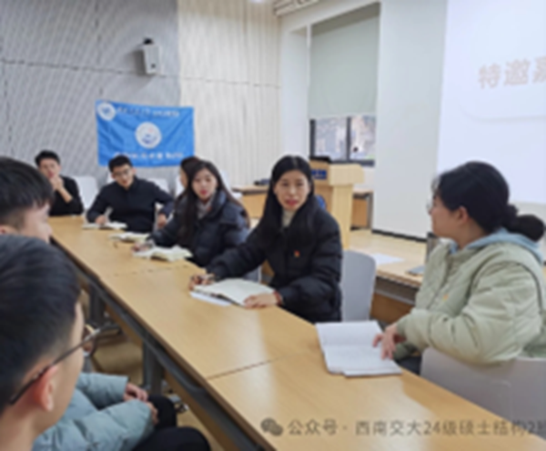 bat365中文官方网站2024级硕士结构2班党支部自成立以来,高度重视党建工作,积极开展各类丰富多彩、形式多样的活动。自获批研究生党建“领航先锋”工程项目建设以来,通过理论学习、案例研讨、参观实践等多种方式,不断提升党员的理论素养与实践能力,充分发挥党组织的战斗堡垒作用和党员的先锋模范作用,扎实推进党建工作迈向新台阶。