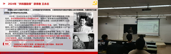 2024年10月22日,支部举办活动,以“时代楷模:马克思主义理论与实践的共和国勋章”为主题。支部组织集体观看2024年共和国勋章颁奖仪式的直播回放,感受颁奖仪式的庄重氛围,聆听获奖者的荣誉与贡献。通过学习共和国勋章获得者的先进事迹,领会他们坚定的理想信念、对马克思主义的信仰和服务大局的精神。这些勋章获得者将个人理想与国家命运紧密相连,转化为忠诚履职尽责的自觉行动,内化为许党许国许民的价值追求。