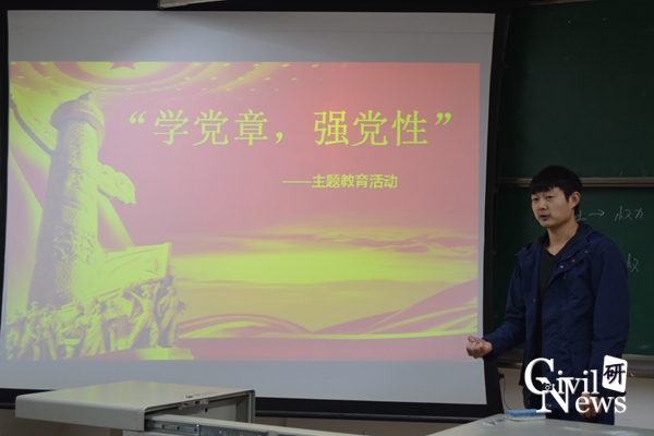 党章就是党的根本大法,是全党必须遵循的总规矩。首先,肖薄同志带领大家重温了最初的入党誓词,认真学习了党章党史相关内容,强调了作为研究生当前时期“学党章,强党性”的迫切性和重要性。