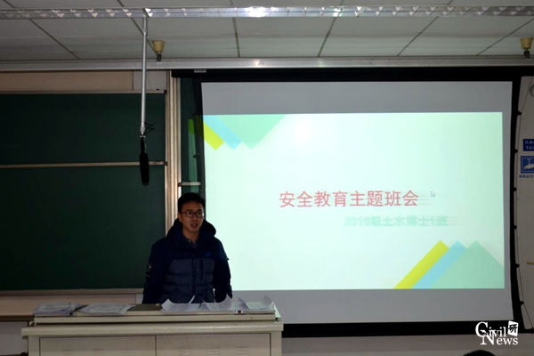 11月24日下午,土木工程学院2016级博士班关于寝室安全教育的主题班会于逸夫楼4319教室顺利召开。班会由该班班长张川主持,班级全体同学参加了学习。