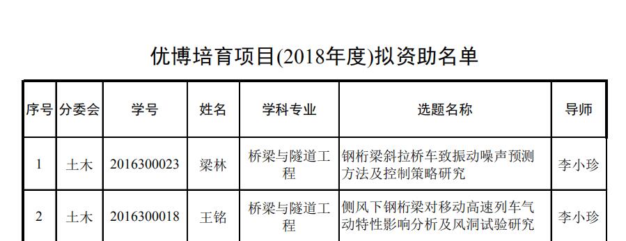西南交通大学2018年优博培育项目拟资助人员名单公示