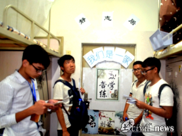 10月11日,土木工程学院新生寝室装潢大赛的初赛在大家的期待中正式开始。当晚六点四十,土木园区的工作人员准时来到天佑斋4号和15号楼楼下部署工作,土木园区指导老师、2015级辅导员王若羽也参加了本次评比检查。