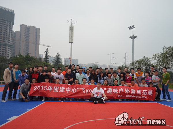 10月17日,由土木工程学院团建中心主办的2015年“飞young”趣味户外素质拓展在南区篮球场顺利举行。参与这次活动的人员主要是团建中心15级的新成员。但是为了增进新老成员之间的沟通与交流,一些老成员如团建中心主任魏冠华也参与其中。尽管天气不佳,但也阻不住团建大家庭美好而又温馨的氛围。