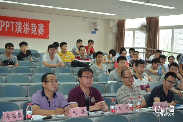 6月12日14:30,土木工程学院第二届研究生PPT学术演讲竞赛在逸夫馆4409教室举行,本次比赛旨在锻炼研究生的学术表达及PPT制作能力,推动研究生综合素质的提高。14名参赛选手通过各系“学术表达与沟通”课程授课老师推荐及自愿报名的方式产生,涵盖土木学院了各专业的硕士研究生。土木学院副院长廖海黎教授与各系“学术表达与沟通”课程的授课老师何畏副教授、杨荣山副教授、杨文波副教授、王骑老师、龙丹冰老师共同担任本次比赛的评委。