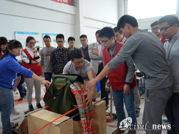 下午,另两场比赛也顺利完成,最高的加载甚至达到了60千克。18点50,所有选手顺利完成模型制作与加载,隧道工程组比赛的现场部分到此全部结束。