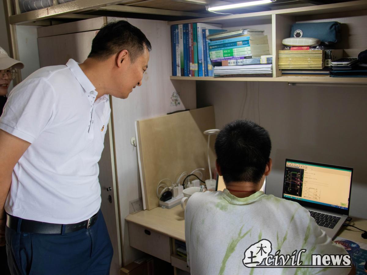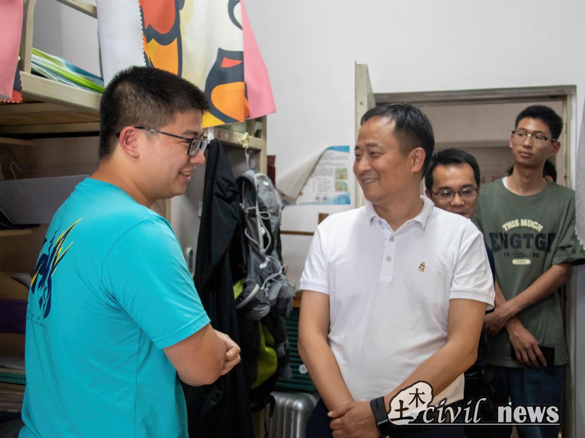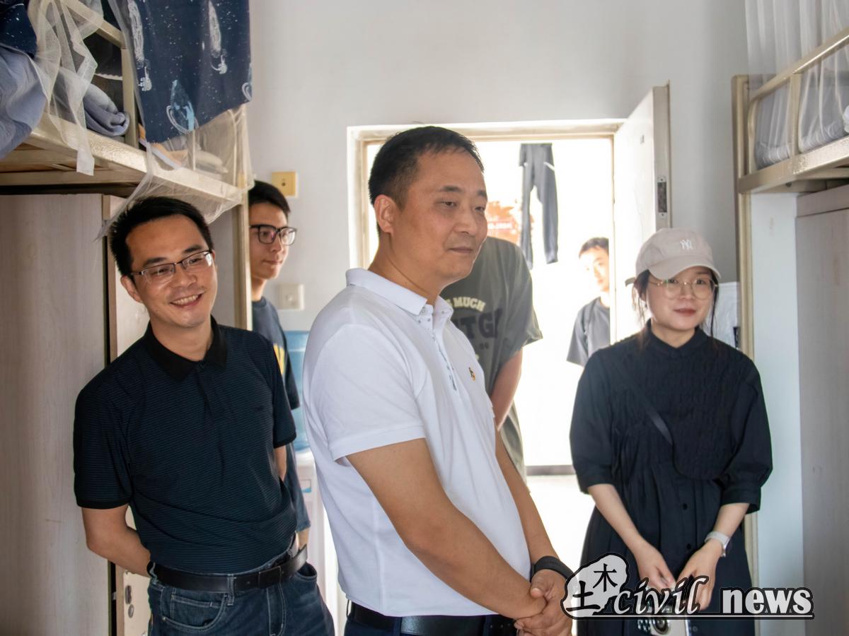 5月19日下午5:00,土木工程学院党委书记高平平、副书记周曦及2019级辅导员一行来到2023届毕业生宿舍进行走访交流。本次走访旨在深入了解毕业生升学、就业情况,认真听取同学们当前的毕业规划和生活情况,为即将进行毕业答辩的同学提供鼓励和支持。