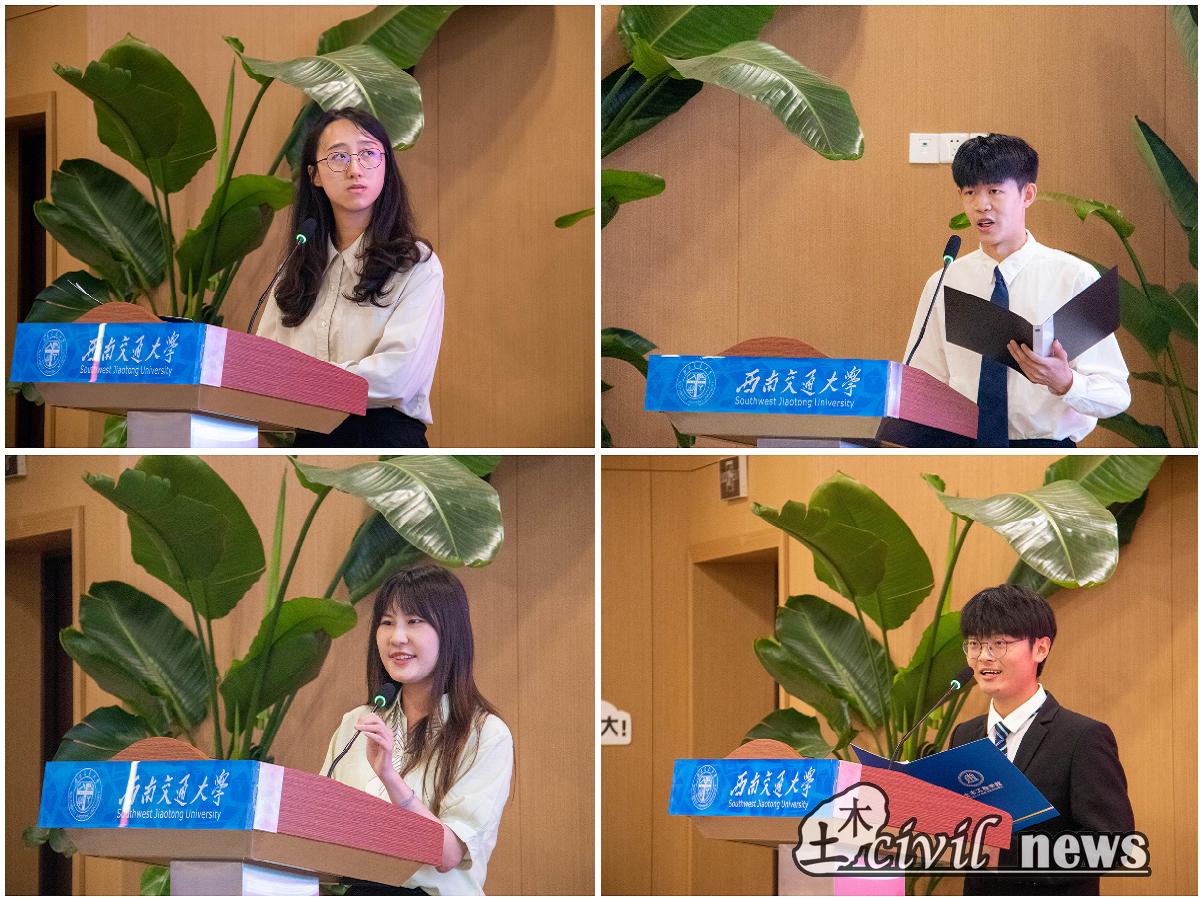 随后土木学院党委副书记周曦发表讲话,他对本次十大优秀本科生表示真挚的祝福,对没有竞选成功的同学也给予充分的肯定和勉励。同时他殷切地希望土木工程学院的同学们能够不断奋斗,自强不息,答好属于自己的青春问卷。