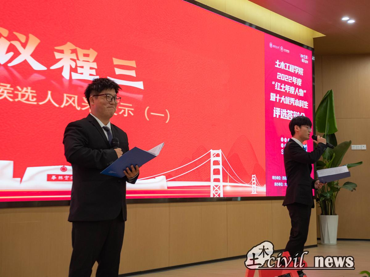自2021年以来,土木工程学院积极打造“红土”品牌活动,形成了以坚定理想信念、厚植家国情怀为根基的红土主题文化,并已连续多年举行红土年度人物暨十大优秀本科生评选答辩评选会,用于表彰政治思想坚定、道德品质优良、学习成绩优异、科研实践能力突出或者在思想品德、学业成绩、科技创造、体育竞赛、文艺活动、志愿服务及社会实践等方面表现突出的全日制本科生。