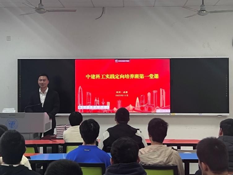 11月23日下午,在同学们期待的目光中,中建科工集团西部大区、学院青年讲师团成员王宏亮导师走上讲台,与同学们展开亲切交流。他为同学们介绍了中建科工集团的公司情况、企业文化,对同学们关心的人才招聘、工程项目等问题耐心地进行解读。“现在互联网上有很多不同的声音,同学们要辩证地看待,我们始终相信土建行业会有良好的发展。”面对同学们对专业未来就业问题的担心,王宏亮导师幽默、温和地进行回应,为同学们加油打气。