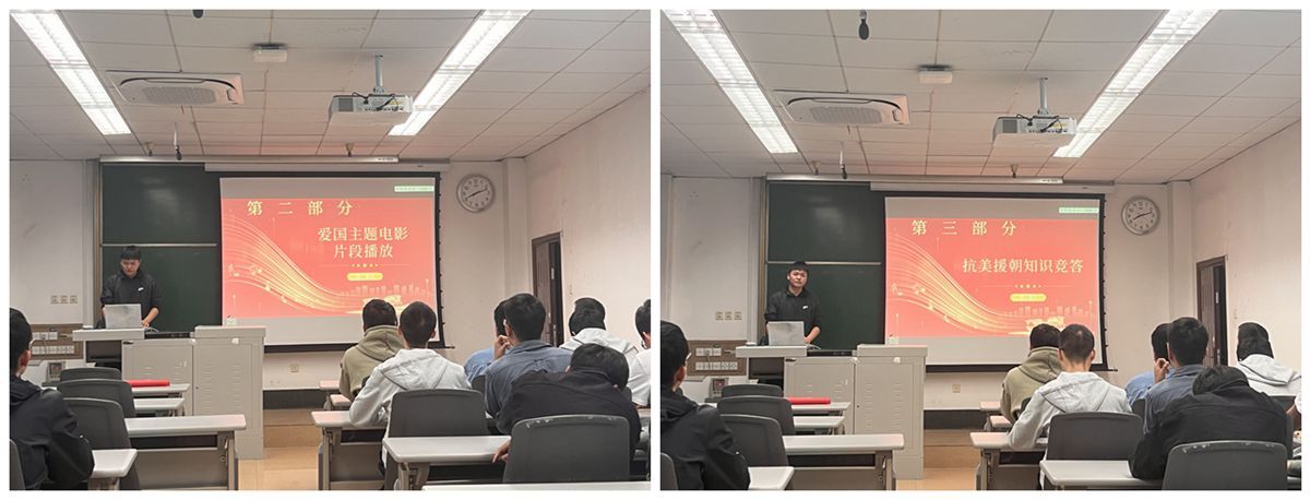 第二部分是全体与会党员和入党积极分子共同观看爱国主题电影片段,第三部分是开展抗美援朝知识竞答。