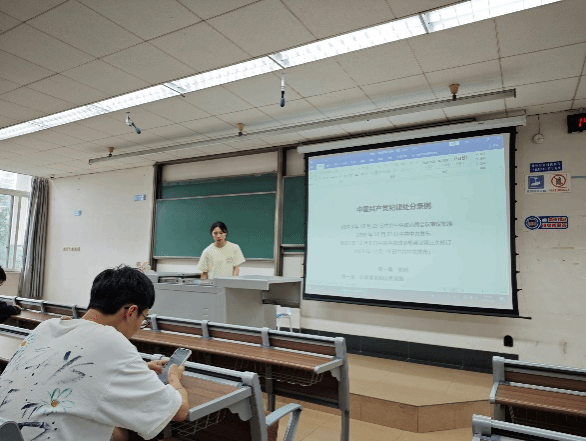 为学习贯彻习近平总书记对学校思政课建设做出的重要指示精神、总书记五四青年节寄语和持续深入学习《中国共产党纪律处分条例》精神,2024年6月6日14:00,2022级硕士道铁1班党支部于九里4409教室举办了六月主题党日活动,此次活动由党支部组织委员赵琪同志主持。