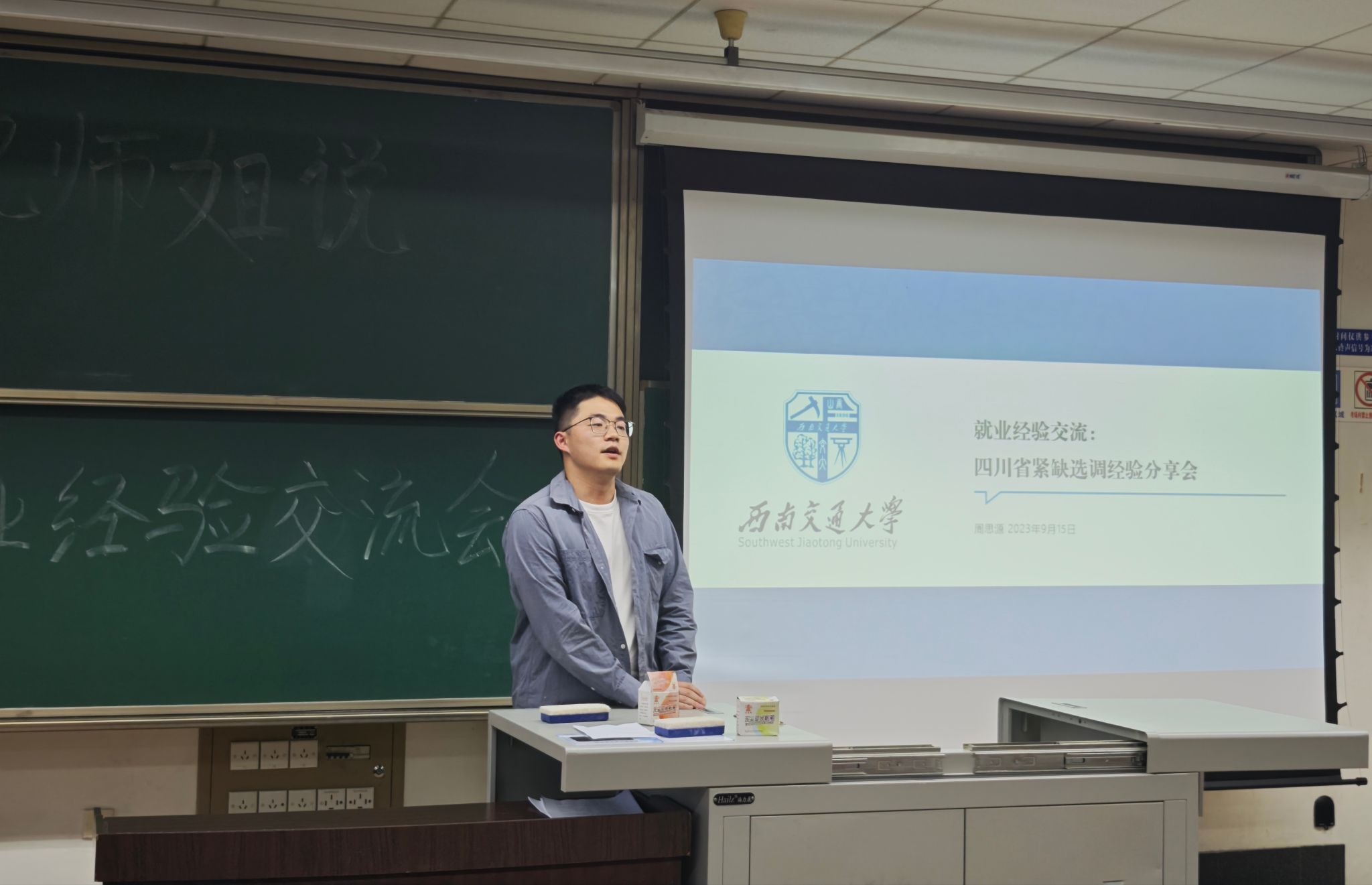 2025 年 5 月 8 日 19:30,由土木研究生事务中心主办的第十一期 “师兄师姐说” 就业经验分享会于九里校区 4323 教室成功举办。本期活动特邀交通运输专业周思源师兄和土木水利专业樊丁萌师兄担任主讲人,围绕紧缺选调生招录政策与备考策略展开深度分享。