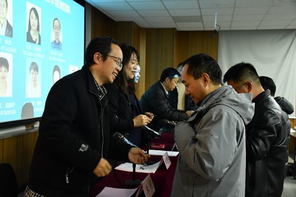 随后,主席台就坐的各位老师向学员代表颁发bat365中文官方网站院徽,老师们与学员代表合影留念。