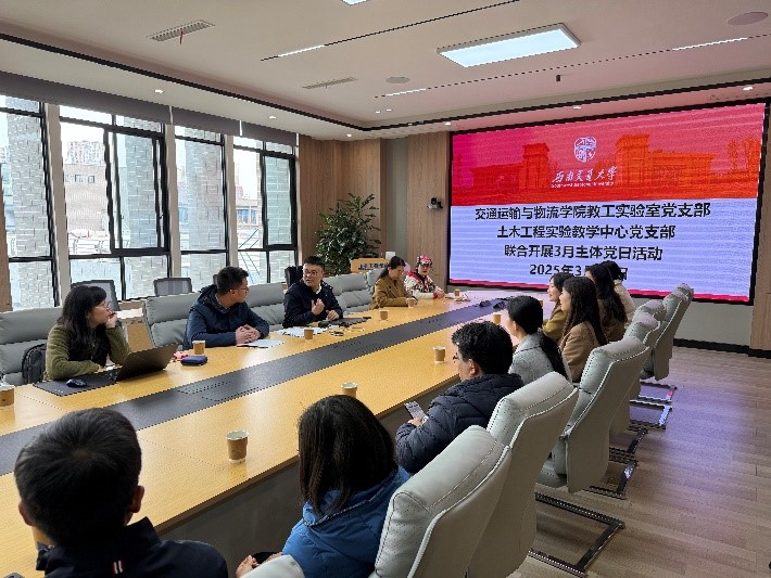 为深入学习贯彻党的教育方针,加强基层党组织建设,促进学科间交流融合,3月13日下午,土木工程实验教学中心党支部与交通运输与物流学院教工实验室党支部全体党员齐聚一堂,联合开展了一场别开生面、内容丰富的主题党日活动,为新学期党建与教学工作注入蓬勃动力。