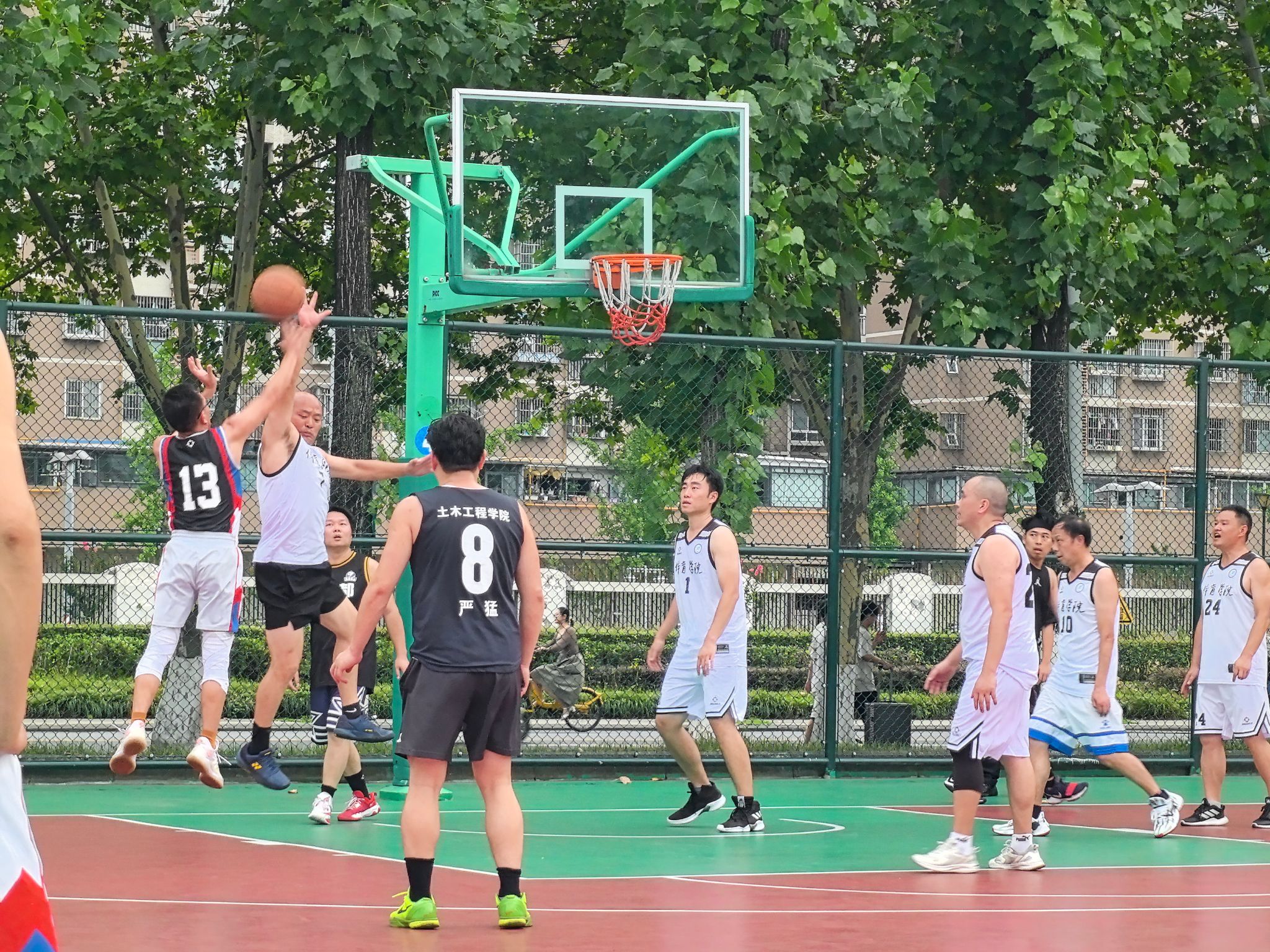 总决赛的舞台上,土木工程学院教职工篮球队与东部校区代表队狭路相逢。作为赛场上的劲旅,东部校区代表队实力不容小觑,这场比赛也被视为巅峰对决。比赛一开始,双方就展开了激烈的对抗,土木工程学院教职工篮球队毫不慌乱,他们按照既定战术,稳扎稳打,通过积极的防守和快速的反击,逐渐扩大胜利的优势。随着比赛的深入,双方的竞争愈发激烈,现场观众的情绪也被点燃,加油声、呐喊声此起彼伏。