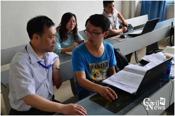 下午3点半,教师座谈会、毕业班及历届毕业生座谈会结束后,专家组在土木学院各系教学负责人的陪同下在犀浦校区7号楼毕业设计专用教室与参加毕业设计的同学进行了走访交流。走访过程中,各位专家询问了学生们毕业设计的思路以及毕业设计选题中所遇到的问题,并针对一些问题提出指导性建议。