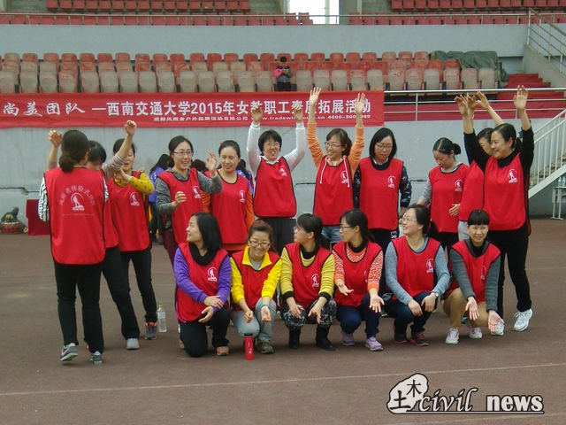 3月13日下午两点,在这个阳光明媚的日子里,由西南交通大学校工会主办,成都风雨者户外拓展运动有限公司承办的“西南交通大学2015年女教职工素质拓展活动”在西南交通大学北区体育场正式举行。本次活动以“巾帼力量,尚美团队”为主题,旨在拓展我校女教职工素质,增强她们的团队协作能力,协同刚刚过去的妇女节给全校女教职工献上最真挚的祝福。