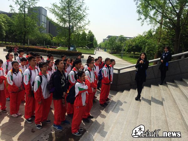 欢迎仪式结束后,树德中学一行被分成A、B、C三大组,由来自土木工程学院的志愿者分贝带领着参观西南交大风洞实验室、土木学院流体力学实验室、虚拟选线3D仿真技术实验室、交通运输实验室等各重点实验室,以及犀浦校区的各处人文景观。虚拟环境选线设计实验室里,同学们带着3D眼镜真实感受火车行进的过程。交通运输实验室与控制系统实验室里,老师为同学们讲解如何正确地调度火车的运行。流体力学实验室里,大家又看到了水流在各种情况下的起伏变化和精密仪器。
