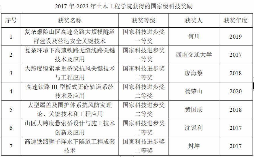 2017年-2023年土木工程学院获得的国家级科技奖励