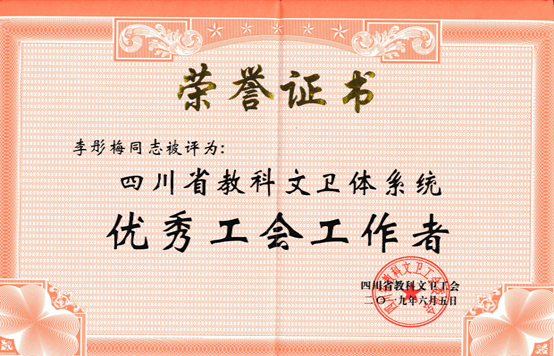 bat365中文官方网站李彤梅同志获得“四川省优秀工会工作者”称号