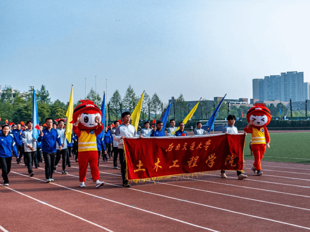 4月12、13日,西南交通大学第123届运动会暨建校128周年校庆运动会在我校犀浦校区北区田径场隆重举行。本次校运会旨在深入贯彻落实习近平总书记“健康第一”的教育理念,着力打造“健康校园、健康交大”的体育文化氛围,促进师生心理健康,塑造良好精神风貌,为学校“双一流”建设汇聚磅礴力量。