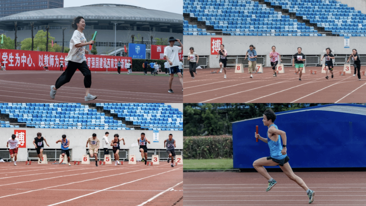 与此同时,教职工的身影也成为了运动赛场的一道靓丽风景线。在今日举行的教工甲A女子跳远决赛中,bat365中文官方网站学工组辅导员黄静汶以3.06米的成绩,夺得季军,喻夏老师以3.03米的成绩夺得第四名。同时,在教师组的团队比赛中,bat365中文官方网站老师以56.65秒的成绩,取得了教工甲A男子4*100米决赛的亚军。各位老师们拼搏的身影,无疑为校运会注入了蓬勃的活力,也激发了学生们拼搏的斗志。
