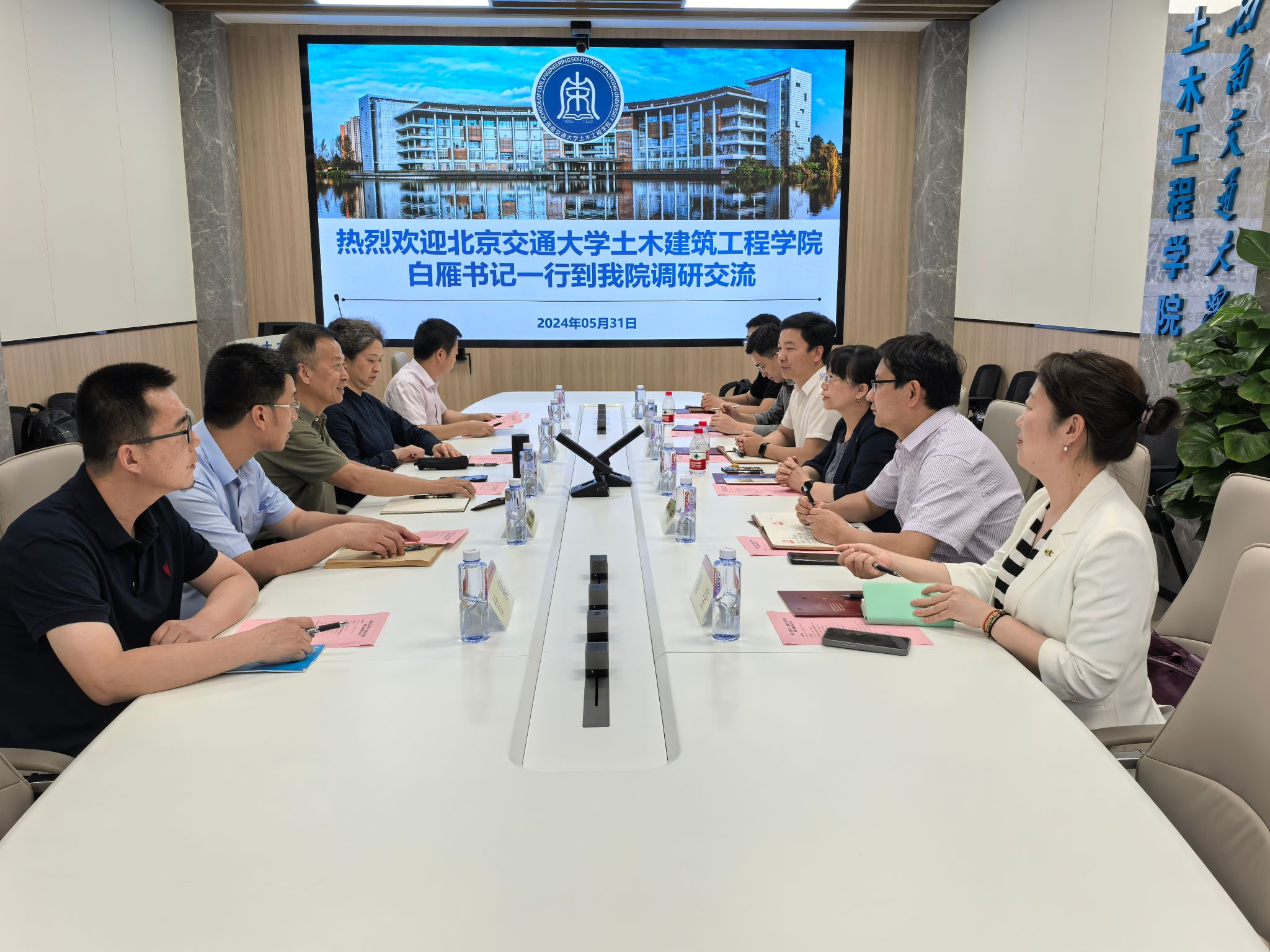 为加强校际交流合作,促进共同发展,2024年5月31日,北京交通大学土木建筑工程学院党委书记白雁、副院长时瑾、副院长解会兵一行6人到bat365中文官方网站进行调研交流。