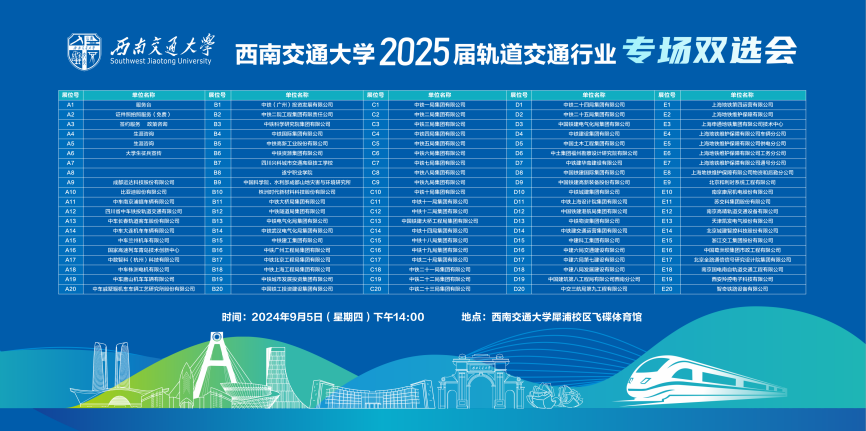 2024年9月5日,西南交通大学2025届秋季轨道交通行业专场招聘会在犀浦校区的飞碟体育馆隆重举行,吸引了全国近百家轨道交通行业的知名企业和机构参与。