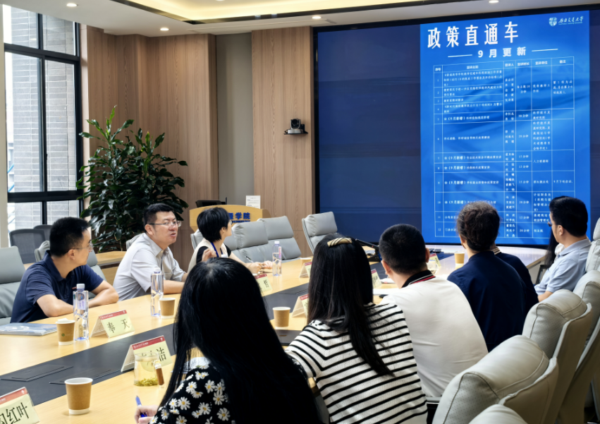 在正式宣讲之前,沈哲代表学校机关党委介绍了“政策直通车”开展相关情况。他讲到,为全面增强机关服务效能,采取更为有效的沟通方式与更有温度的举措,全心全意为师生员工服务,机关与直属单位党委组建了“政策直通车”宣讲团。政策宣讲摒弃了传统召集各学院、部门集中开会的做法,转而采用“送服务上门”的模式,以实现政策与学院日常工作的精准对接。通过与各学院的深入沟通与交流,了解学院在实际工作中的具体情况与需求,进而为学院提供更具针对性和实效性的支持和服务。