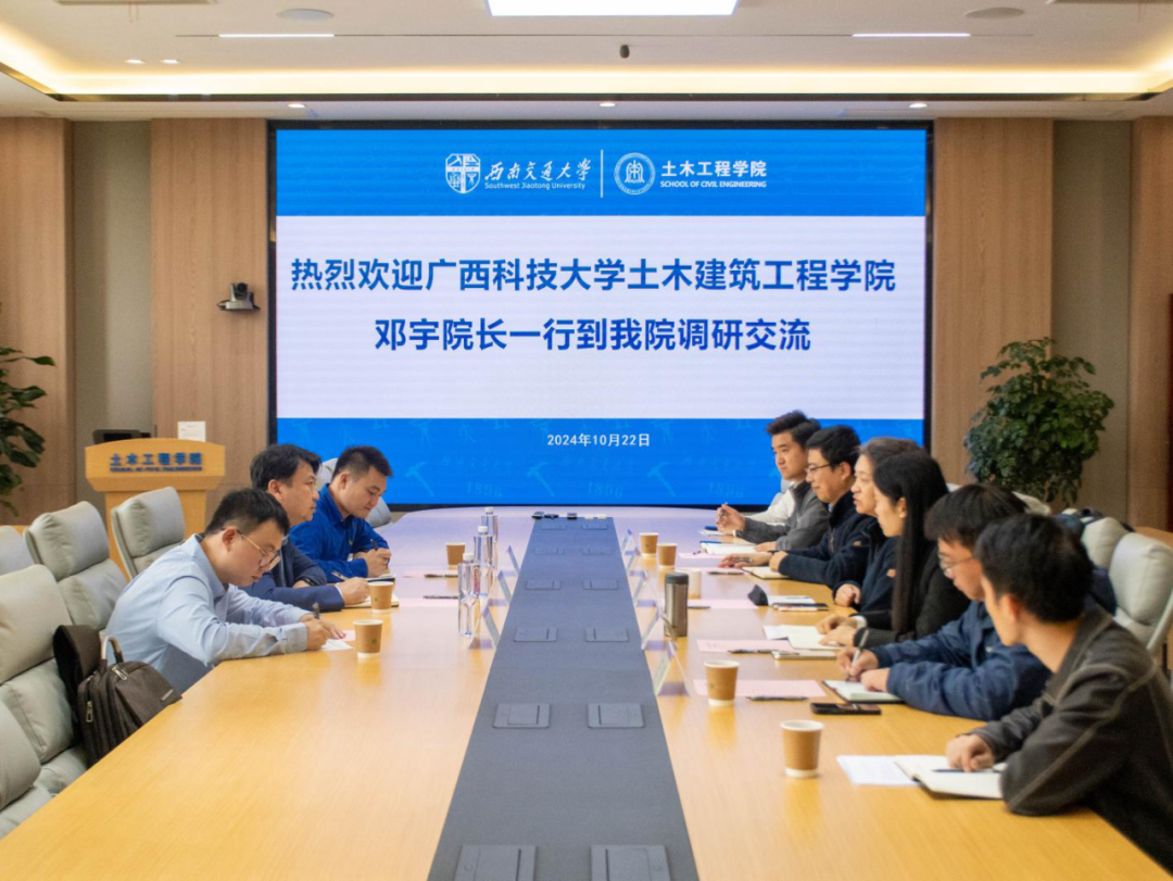 邓宇对bat365中文官方网站的热情接待表示感谢,并介绍了广西科技大学土木建筑工程学院的基本情况。他表示,广西科技大学土木建筑工程学院近年来在学科建设、科研工作等方面取得了显著成绩。此次调研交流,旨在学习借鉴bat365中文官方网站在学科建设、人才培养等方面的先进经验和做法,欢迎交大土木师生到广西科技大学访问交流,进一步加大合作交流力度。邓宇一行还就人才引进等相关问题与bat365中文官方网站进行讨论交流。