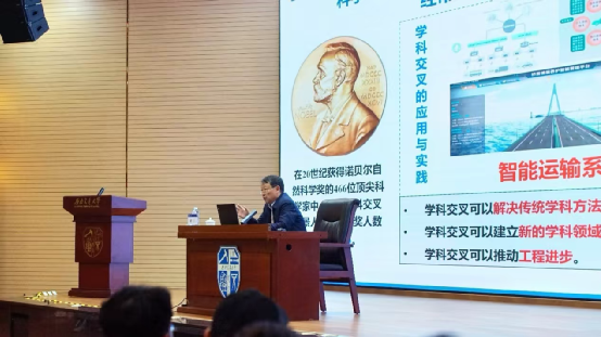 讲坛现场,黄卫院士结合四十余年在工程建设、管理、教学和科研中的实践经验,聚焦大跨径桥梁刚桥面铺装关键技术、高等级路面设计理论与方法、智能运输系统等科研项目实例,深入浅出地讲解了科学研究的核心理念与实践方法。围绕“数学为基,创新引领”、“学科交叉,事半功倍”、“原理清晰,大道至简”、“方向正确,前沿探索”、“学以致用,团队合作”五个主题,为师生详细讲解了做科研的思路与方法。