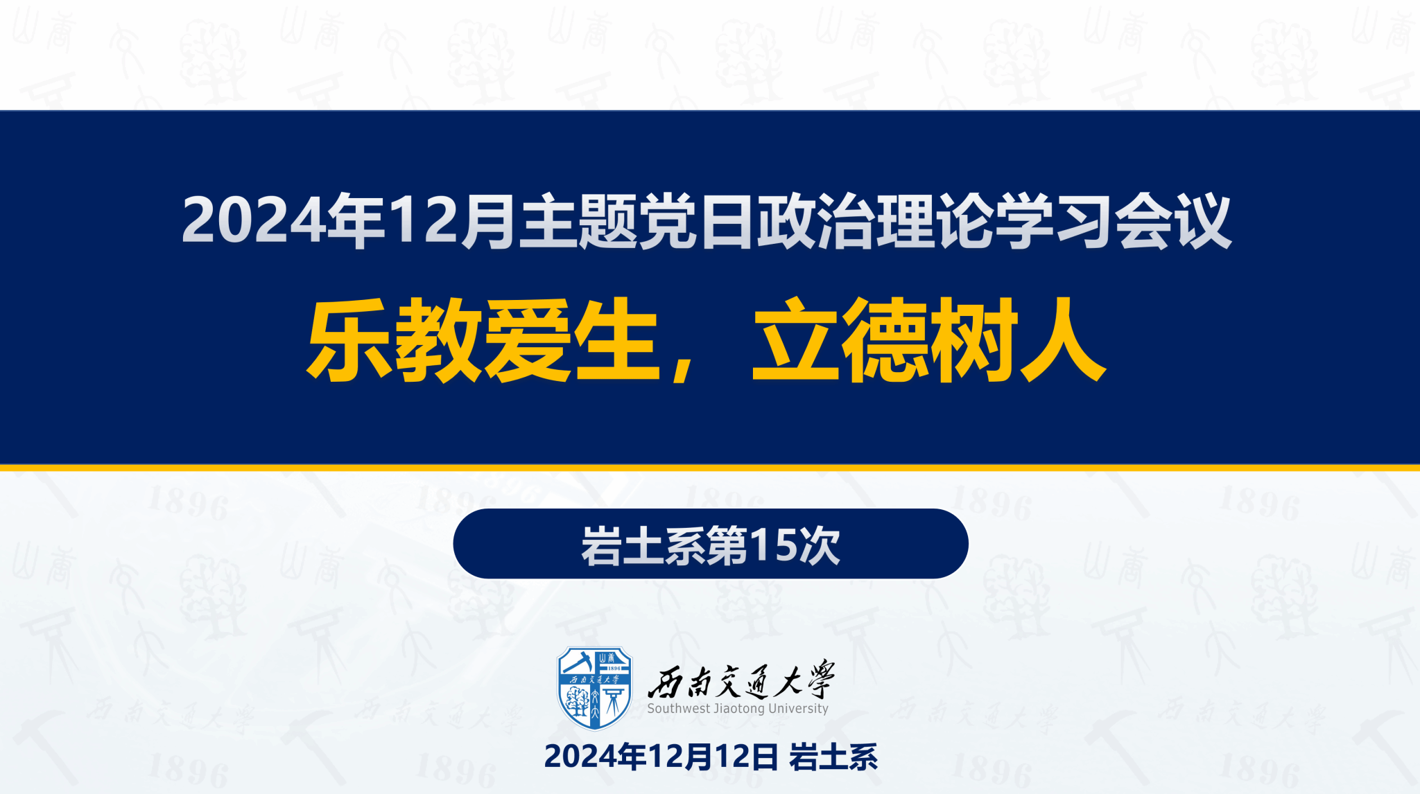2024年12月12日,岩土工程系在土木馆1235室开展“乐教爱生、立德树人”主题党日政治理论学习活动,土木工程学院党委书记郑江出席,活动由岩土工程系教工党支部书记张迎宾教授主持。