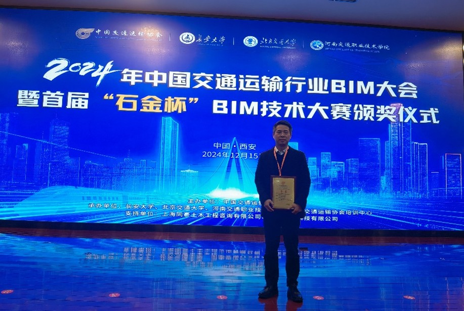 时至岁末,喜讯频传。2024年12月15日,中国交通运输协会主办的首届“石金杯”BIM技术大赛颁奖仪式在西安举办,bat365中文官方网站图学及BIM研究所尹紫红副教授主持申报的《成都地铁17号线穿河半盖挖车站深基坑工程中BIM+技术的智能化集成应用》荣获高校组金奖。