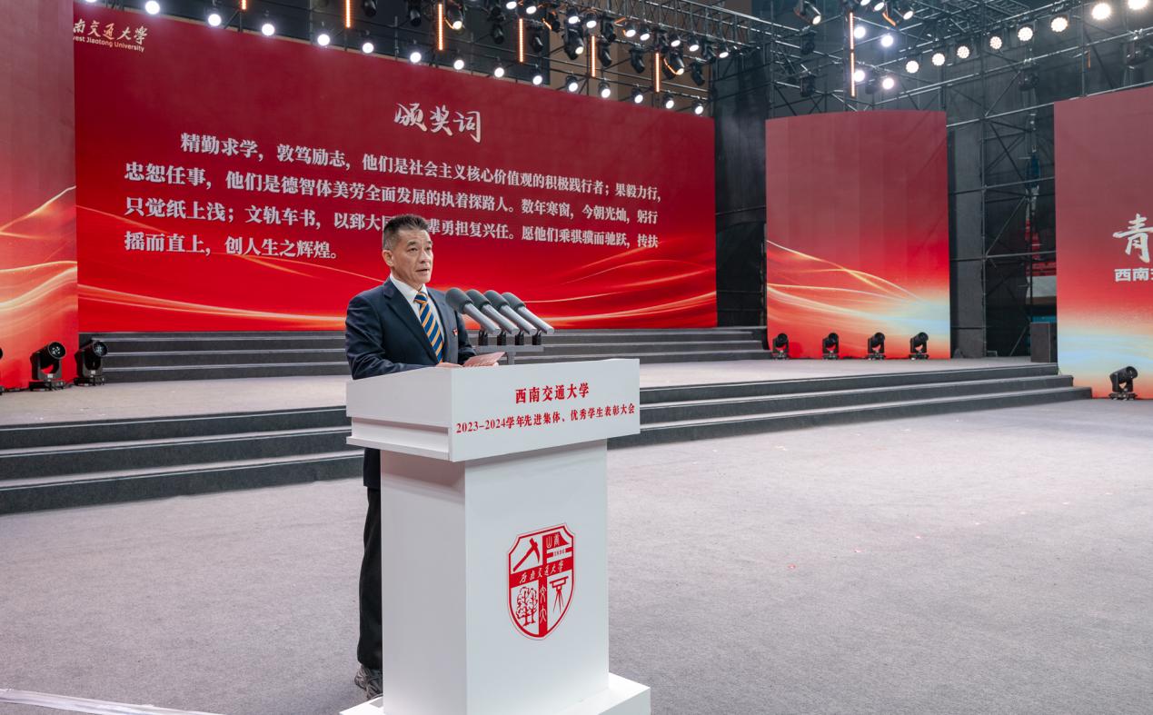 当天下午,柳州欧维姆机械股份有限公司总经理陈昱鹏出席西南交通大学2023-2024学年先进集体、优秀学生表彰大会并致颁奖词。