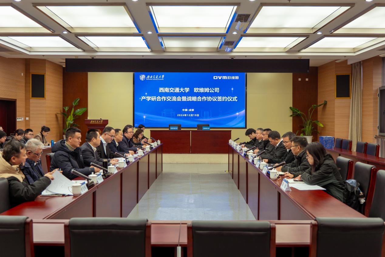 12月19日,西南交通大学与柳州欧维姆机械股份有限公司在犀浦校区综合楼148会议室签署战略合作协议。欧维姆公司总经理陈昱鹏,西南交通大学党委副书记高平平出席签约仪式并致辞。签约仪式由校合作发展处处长孟新智主持。