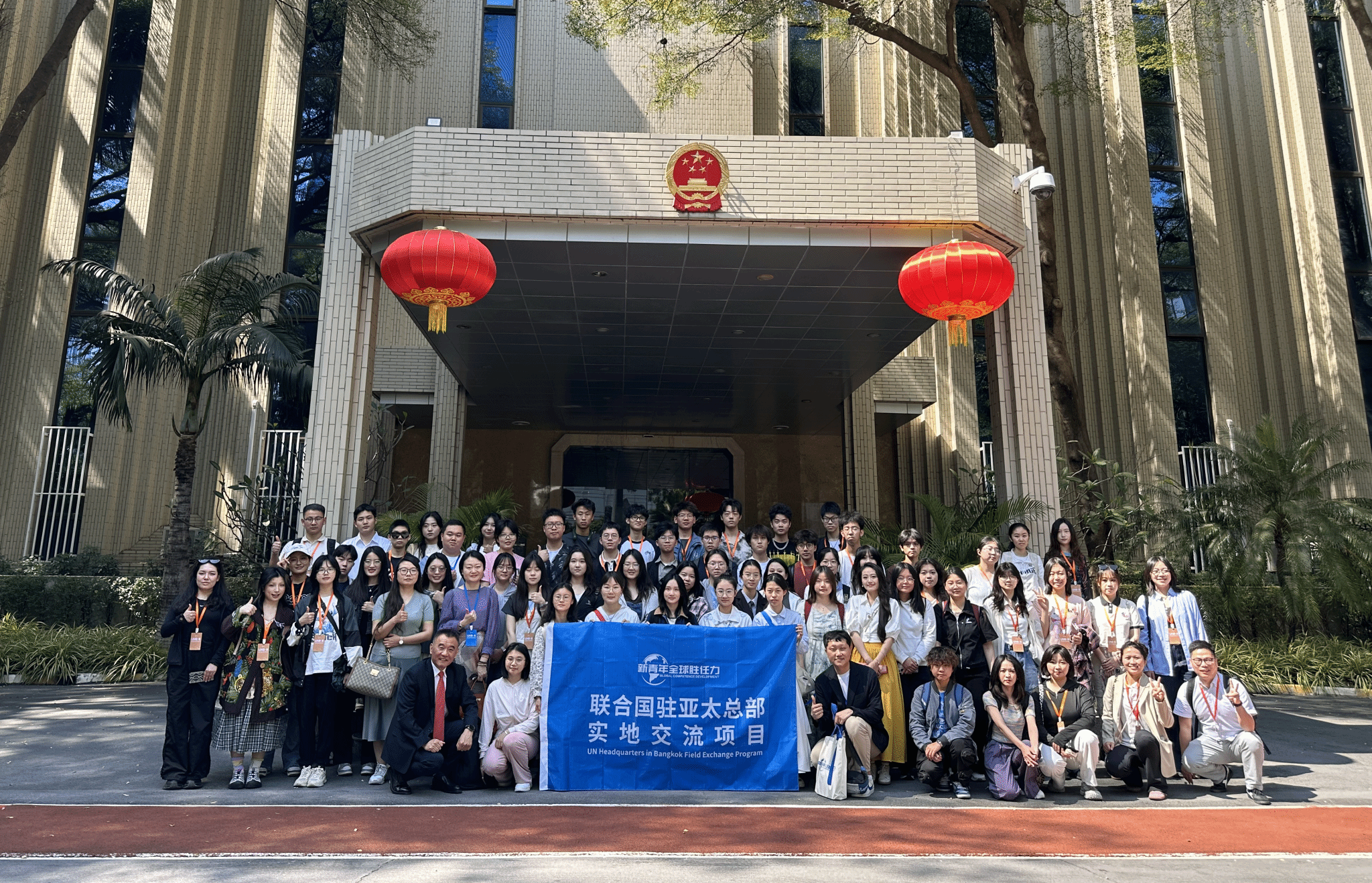 联合国驻亚太总部实地交流项目是“新青年全球胜任力人才培养计划”中“国际组织人才培养专题实践活动”之一。2025年,该项目吸引了来自西南交通大学、厦门大学、西南大学、成都大学等九所高校学生积极参与。项目通过选拔优秀学生组成新青年代表队,赴泰国·曼谷的联合国办事处进行实地交流,激励青年学生贡献智慧,拓展国际视野、增强国际理解、提升全球胜任力、提高国际组织就业竞争力。