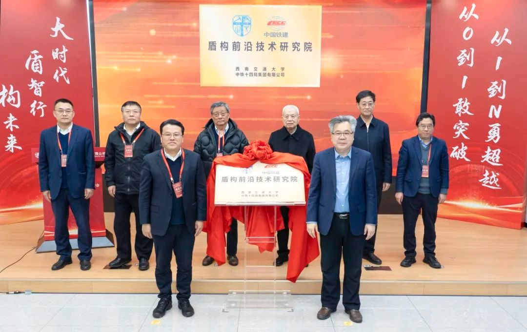 3月9日,西南交通大学联合中铁十四局集团有限公司成立盾构前沿技术研究院。西南交通大学党委常委、副校长晏启祥,中铁十四局集团有限公司党委书记、董事长周长进分别在成立大会上致辞。在国家最高科学技术奖获得者、中国工程院院士钱七虎和中国工程院院士梁文灏、卢春房、王明洋等专家见证下,中国工程院院士、西南交通大学首席教授何川与中铁十四局党委书记、董事长周长进共同为研究院揭牌。中铁十四局纪委书记陈明主持会议。