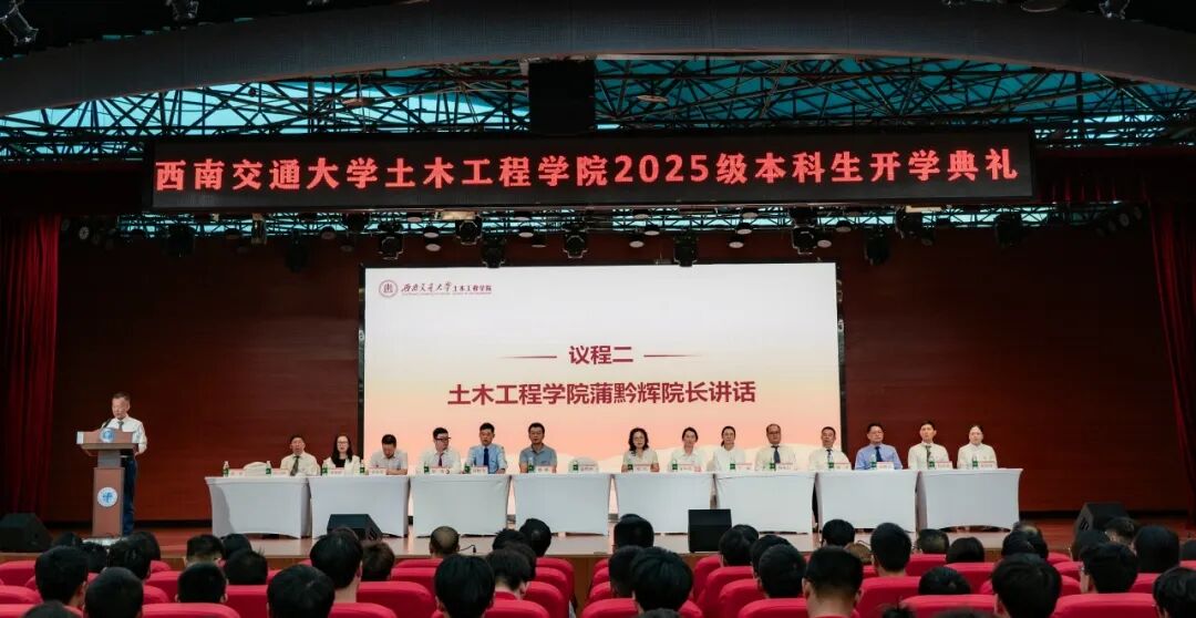 秋风吹拂,岁月如诗。为庆祝土木工程学院679名来自五湖四海的新生跨越山河,汇聚交大,9月8日晚,bat365中文官方网站在犀浦校区大学生活动中心隆重举行了土木工程学院2025级本科生开学典礼。土木工程学院院长蒲黔辉,党委书记郑江,副院长陈嵘,党委副书记兼副院长车小洁,副院长徐腾飞、于丽,教学主管郭瑞,道路与铁道工程系主任杨荣山,桥梁工程系主任李永乐,岩土工程系主任杨涛,建筑工程系副主任刘艳辉,地下工程系副主任蒋雅君,陆地交通灾害防治技术研究中心执行主任庄卫林,流体力学教研室主任杨庆华,图学及BIM研究所副主任赵莉香出席典礼,学院专业老师、2025级本科班导师、全体辅导员们共同到场观礼。典礼由党委副书记刘萍主持。