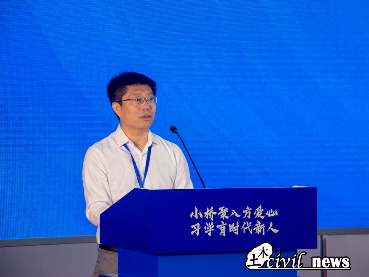 随后,福州大学参赛教师代表赵秋教授上台发言。赵秋表示,大赛旨在传承并发扬茅以升先生迎难而上的科学技术和勇于担当的奉献精神,“用桥梁连接公益”,为贫困地区的孩子架设安全求学之桥。在突出创新性的同时,结合国情,为桥梁的过渡建设作科学论证。