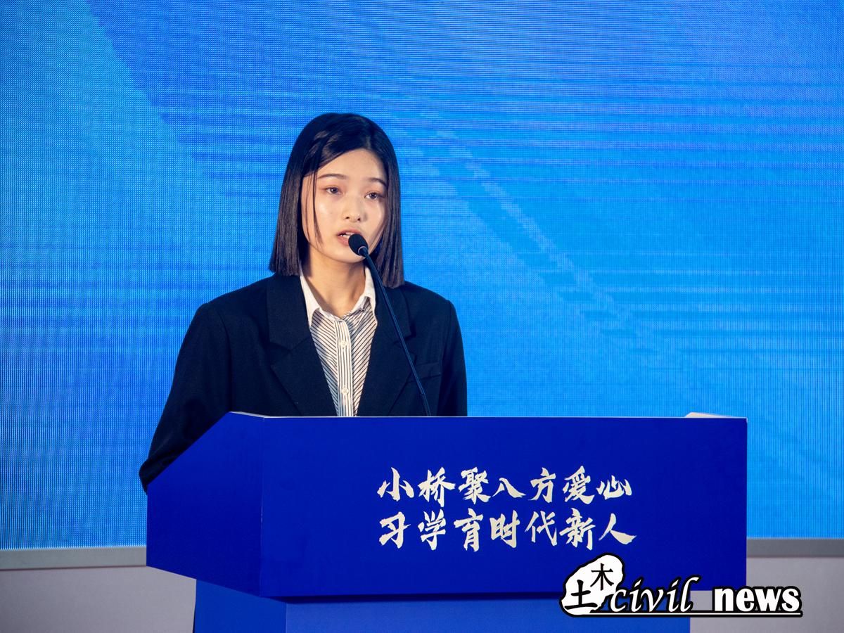 “参赛过程中,我与队友们共同面对挑战,互相鼓励,共同成长。我们的设计作品,既包含了我们对工程技术的理解与创新,也融入了我们对社会的关爱与责任。”在开幕式第四项议程中,参赛学生代表西南交通大学谢芯茹同学进行发言。她从参赛者的角度,对此次“茅以升公益桥—小桥工程”创新设计大赛作真诚的演讲。谢芯茹同学所讲述的内容,正是对此次大赛理念的践行。