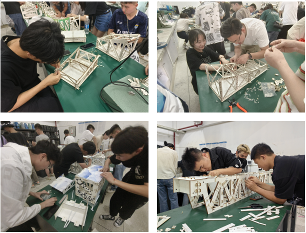 5月14日上午8时,各组参赛模型经过集中荷载、均布荷载和移动荷载几级加载的激烈角逐,16组模型在完赛的48组模型中脱颖而出,成功加满所有预设荷载,成为奖项的有力角逐者。